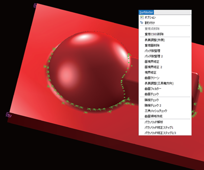 | ● | 内部データレベルでのチェック・面修正機能 アンダー部や面の不正をチェックする機能に加え、「多数の重複面がある」「面の境界線に問題」など、手動での修正が難しいケースに即応する多彩な面修正機能群を実装。