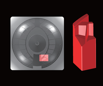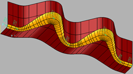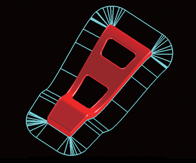 | ● | パーティング面の自動作成 複数の面で構成された形状の境界線から、任意の角度と幅で放射面を自動一括作成。自己干渉面が発生した場合も自動修正機能を複数スタンバイ。