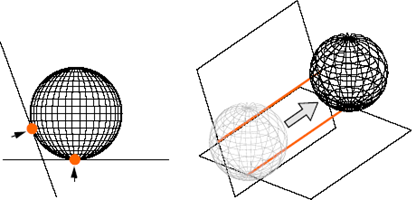 両面に接しながら前進する指定した半径を持ったボールを想像してください。ボールの右、左の接触したラインが右、左面のトリミングラインとなります。ボール本体がフィレット面を作成します。