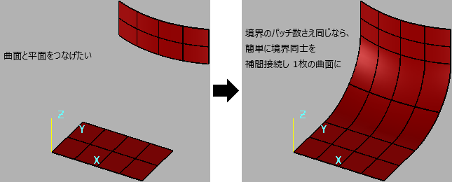 変形機能 (曲線や曲面を別の曲面に貼りつけ)(2種)