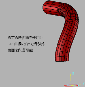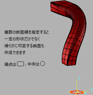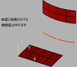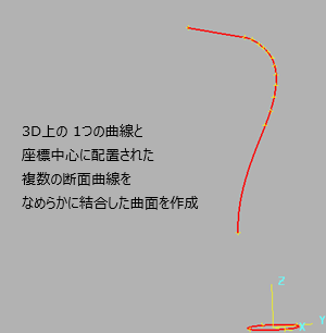曲線に沿った複数の断面線による曲面形成 (4種) /