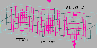 |  自動で抽出されたフィーチャーを編集することができます。ツリー構造のグループですので、単体のドリル穴にも、同径の複数のドリル穴にも対応でき、貫通穴の穴あけ方向の逆転、開始点の延長、終了点の延長、分割とさまざまな編集が可能です。