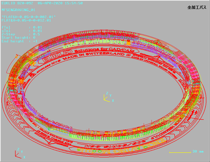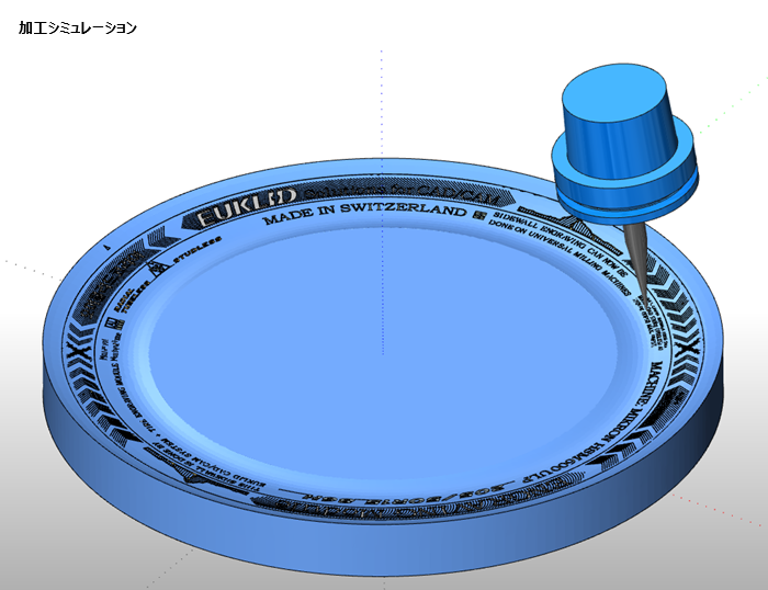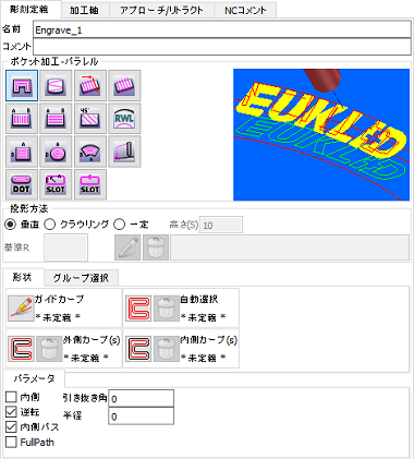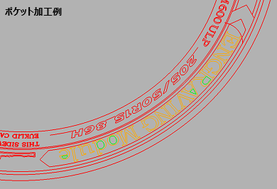 オレンジ色の輪郭内を緑色の輪郭を残してポケット加工