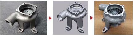 | 従来の鋳物部品を3Dプリンタで作成するため、Artec3Dスキャナで取得したデータをもとにGeomagic