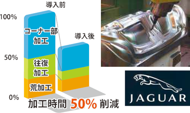 無駄な回避行動の削除や切削負荷による送り速度、回転数を最適化し、加工時間の短縮や工具寿命の工場を実現します。