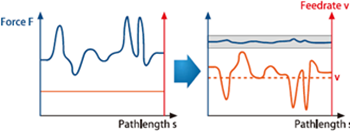 工具負荷だけでなく切削状況をリアルに把握し、実践レベルの最適化処理を行います。