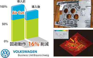 | 無駄な回避行動の削除や切削負荷による送り速度、回転数を最適化し、加工時間の短縮や工具寿命の工場を実現します。