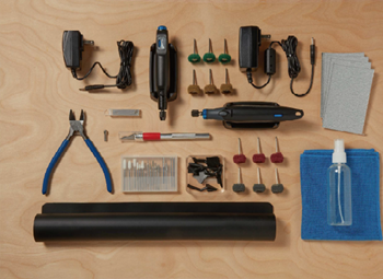 エルゴノミック・ペンサンダー / 回転ツール / 回転ツール用ビットキット (研磨+ 艶出しビッ卜×16種+バフビット×12種) / フラッシュカッター / ホビーナイフ+ブレード / スプレーボトル / マイク口ファイバークロス / 大型シリコンマット (40 x 60cm)